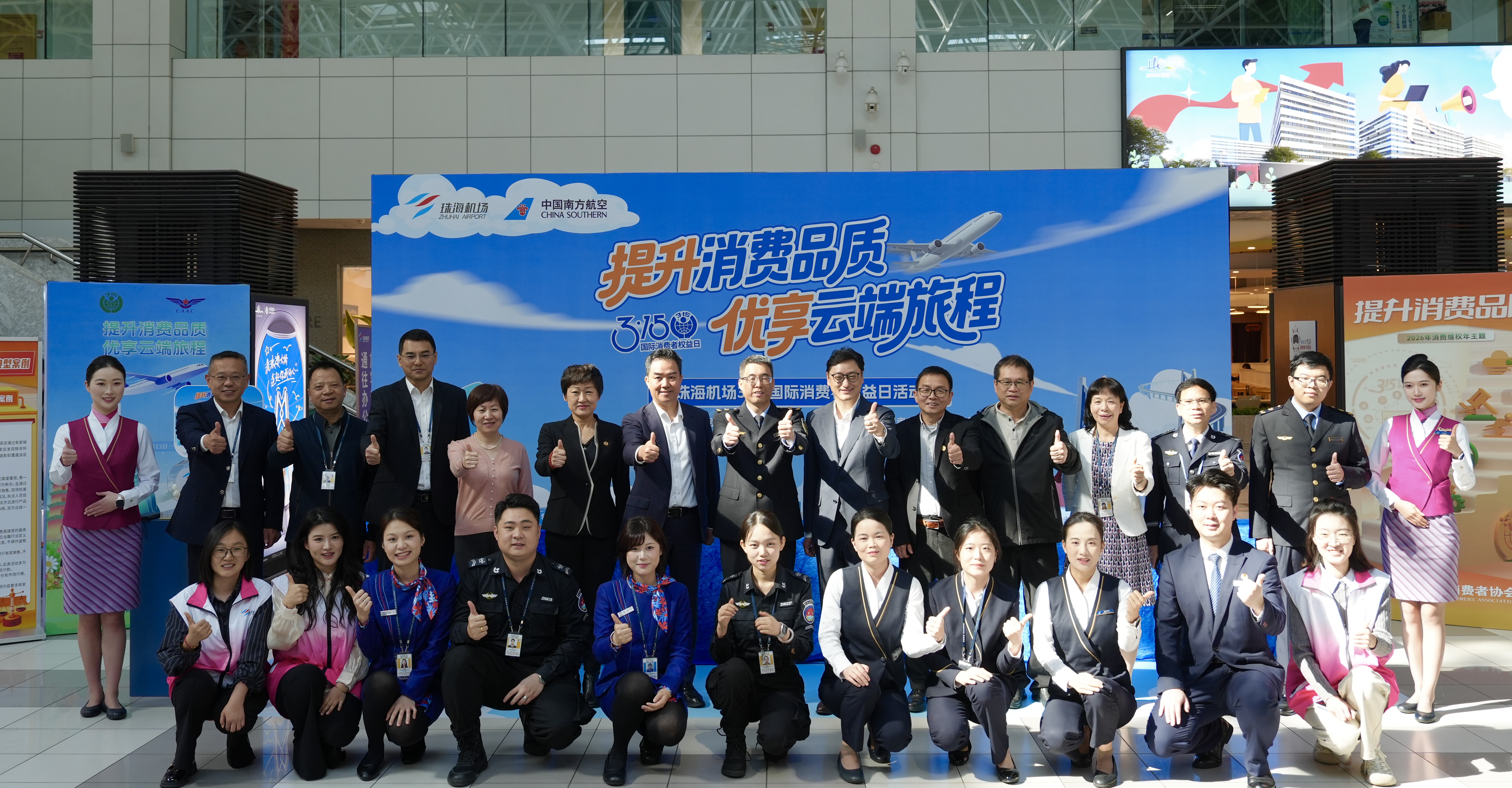 為積極響應民航局2026年“3?15國際消費者權益日”宣傳工作號召,在珠海市金灣區市場監督管理局指導下,珠海機場聯合南航珠海航空有限公司,以“提升消費品質,優享云端旅程”為主題,通過線上線下聯動形式,開展系列宣傳活動,全面提升旅客消費體驗、宣傳本場特色旅客服務,著力營造安全、放心、誠信的民航消費環境。