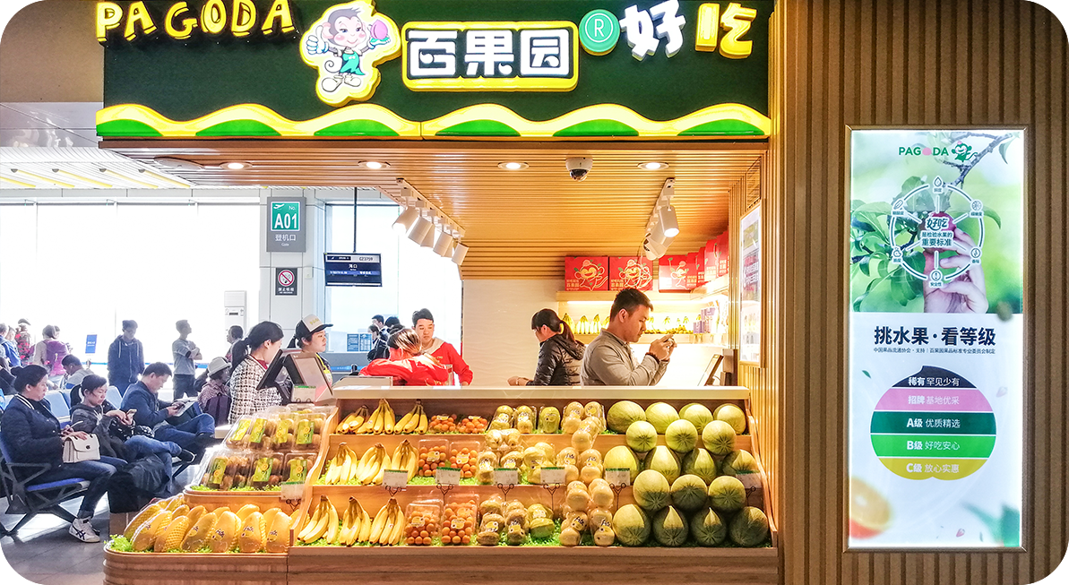 百果園是集果品生產、貿易、零售為一體的水果全產業鏈企業,也是水果專營連鎖業態的開創者,截止2018年12月,門店數量已超3700家,遍布全國50多個城市,并布局了200多個水果種植基地。