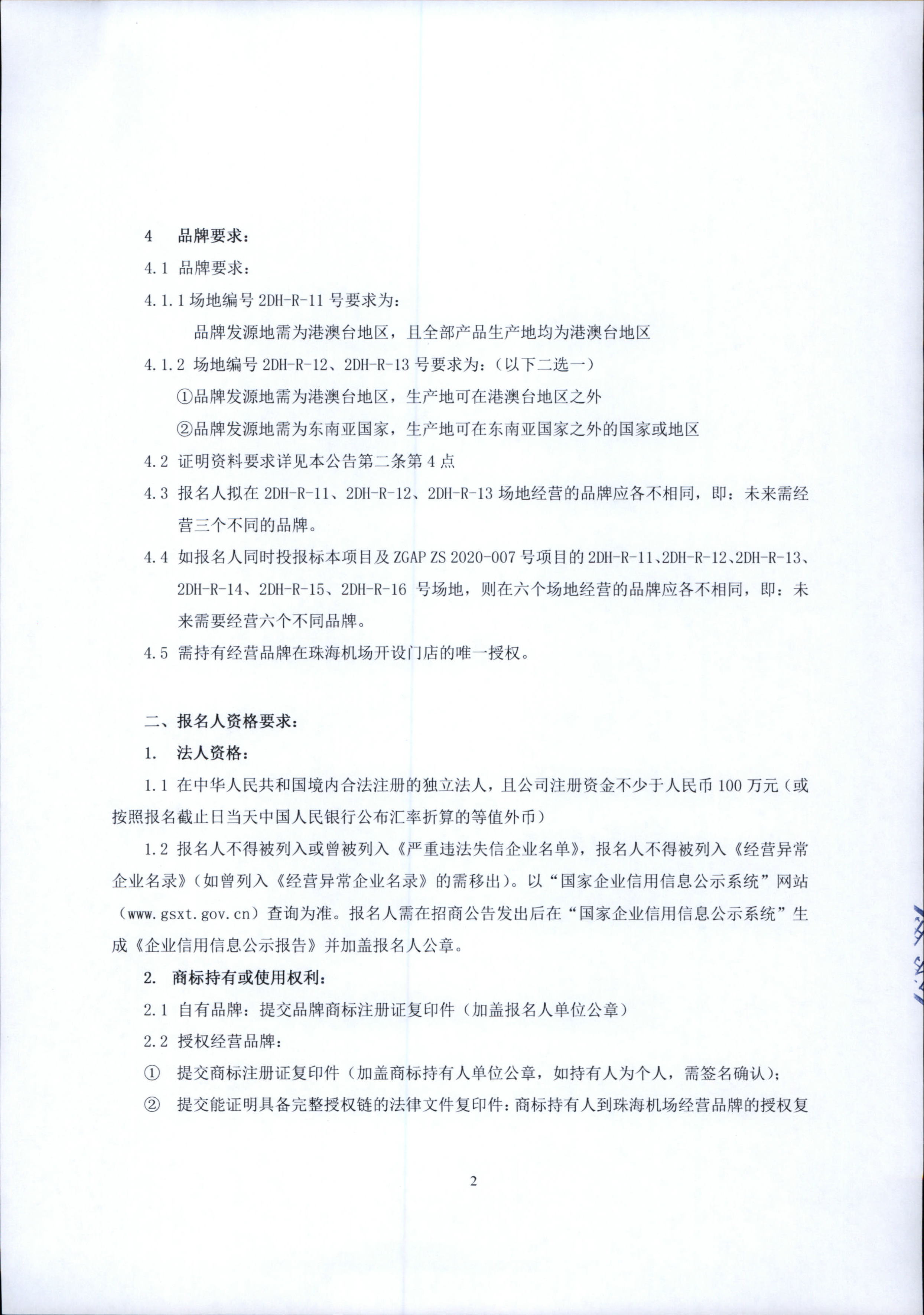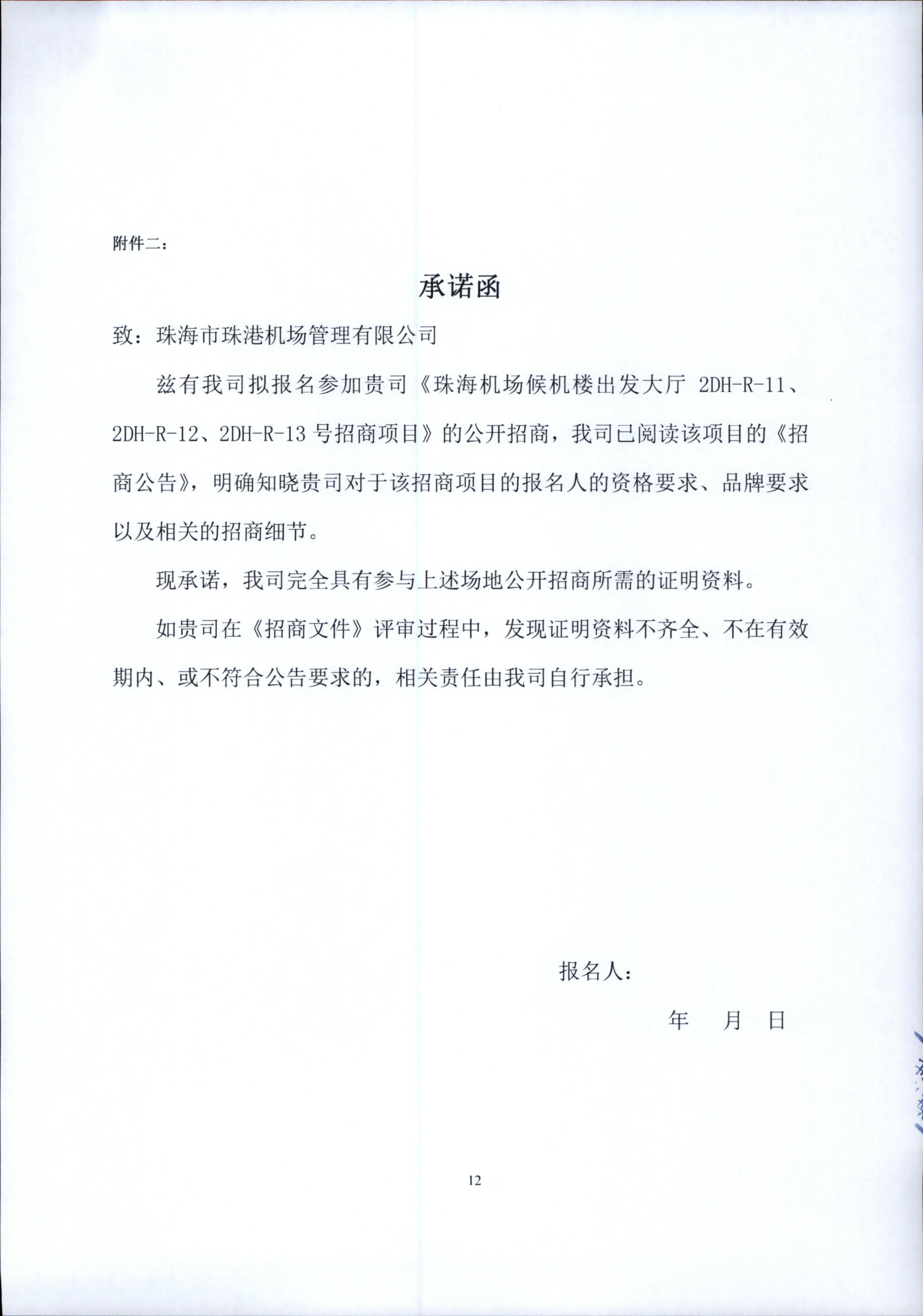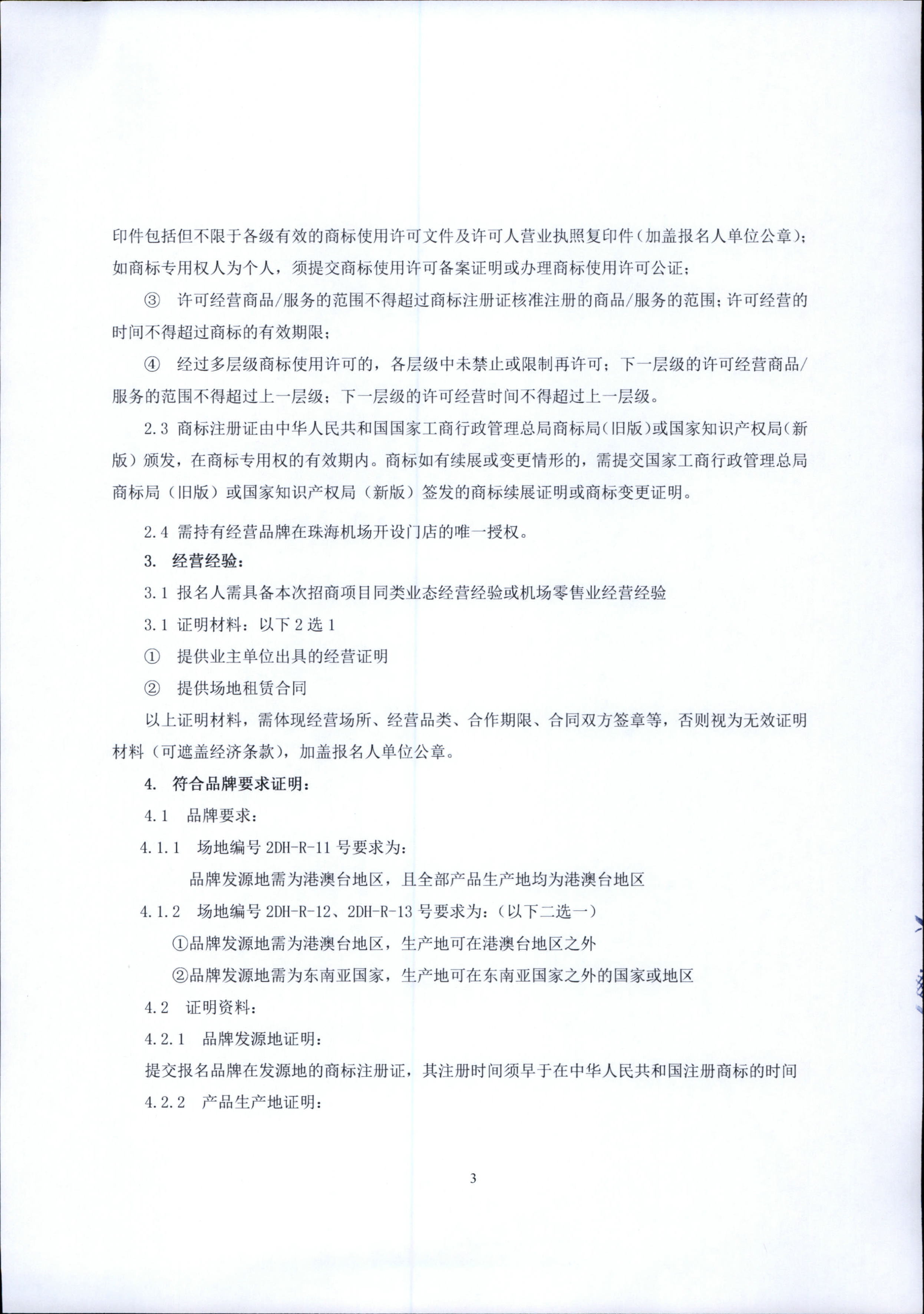 珠海機場候機樓出發大廳2DH-R-11、2DH-R-12、?2DH-R-13號場地零售招商項目