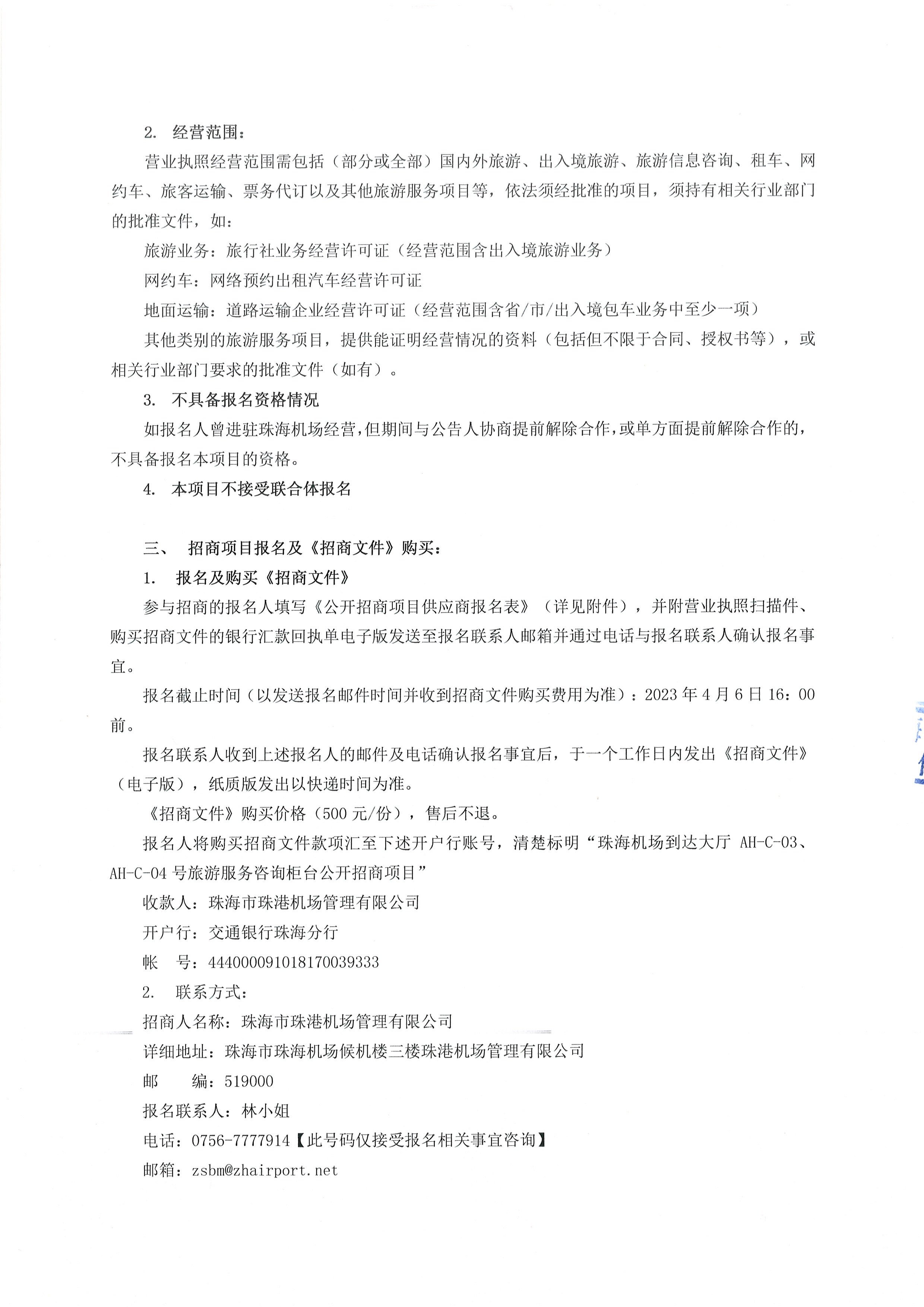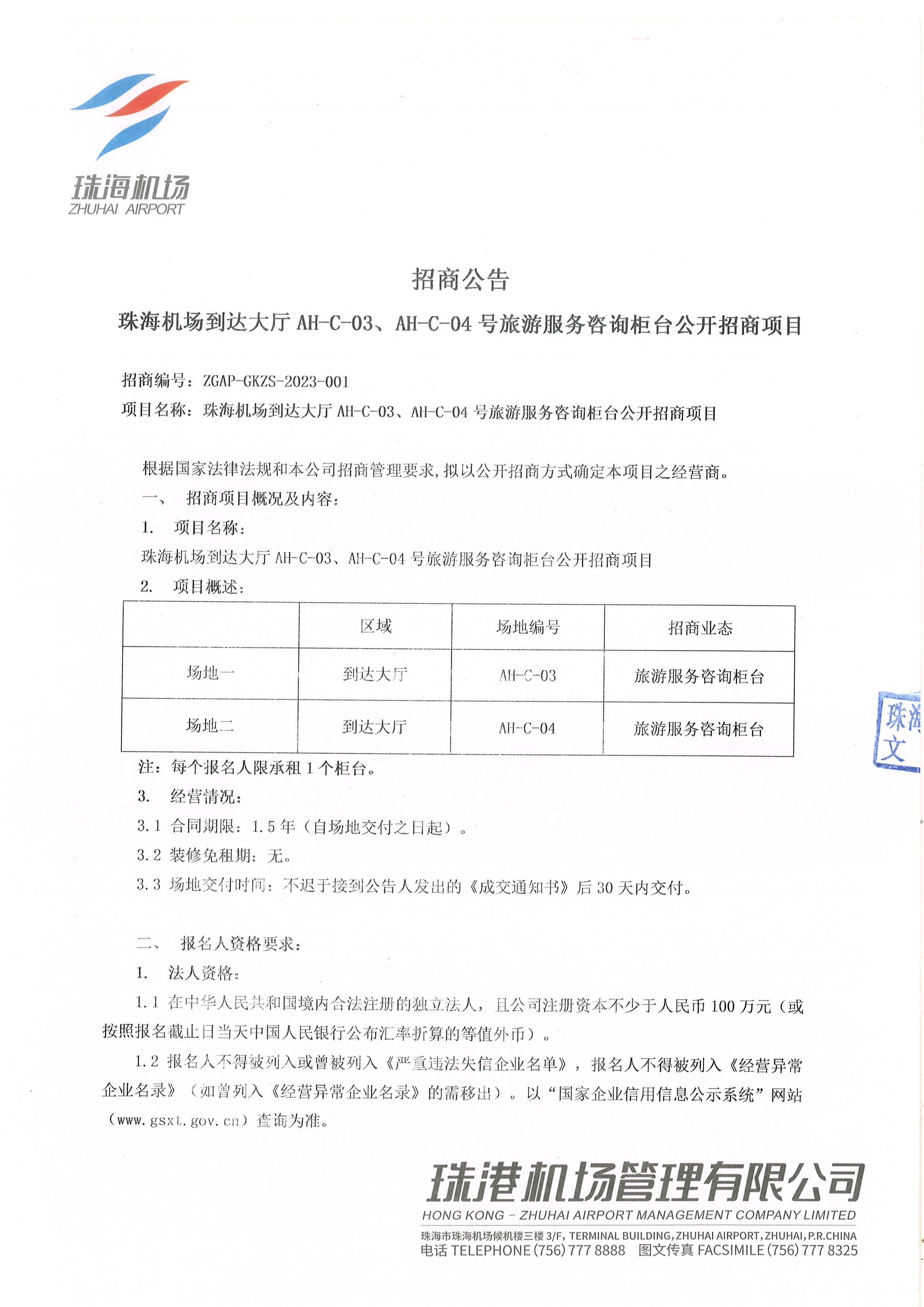 珠海機(jī)場(chǎng)到達(dá)大廳AH-C-03、AH-C-04旅游服務(wù)咨詢柜臺(tái)公開(kāi)招商項(xiàng)目-附件