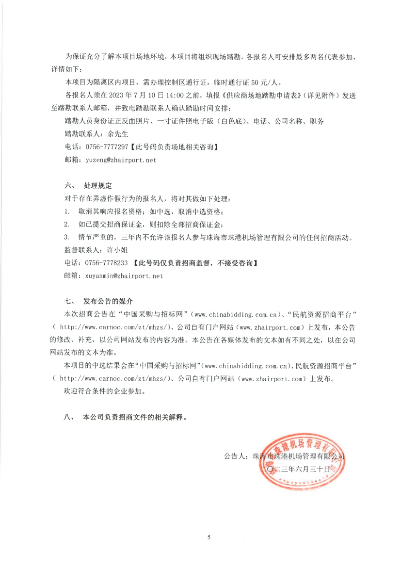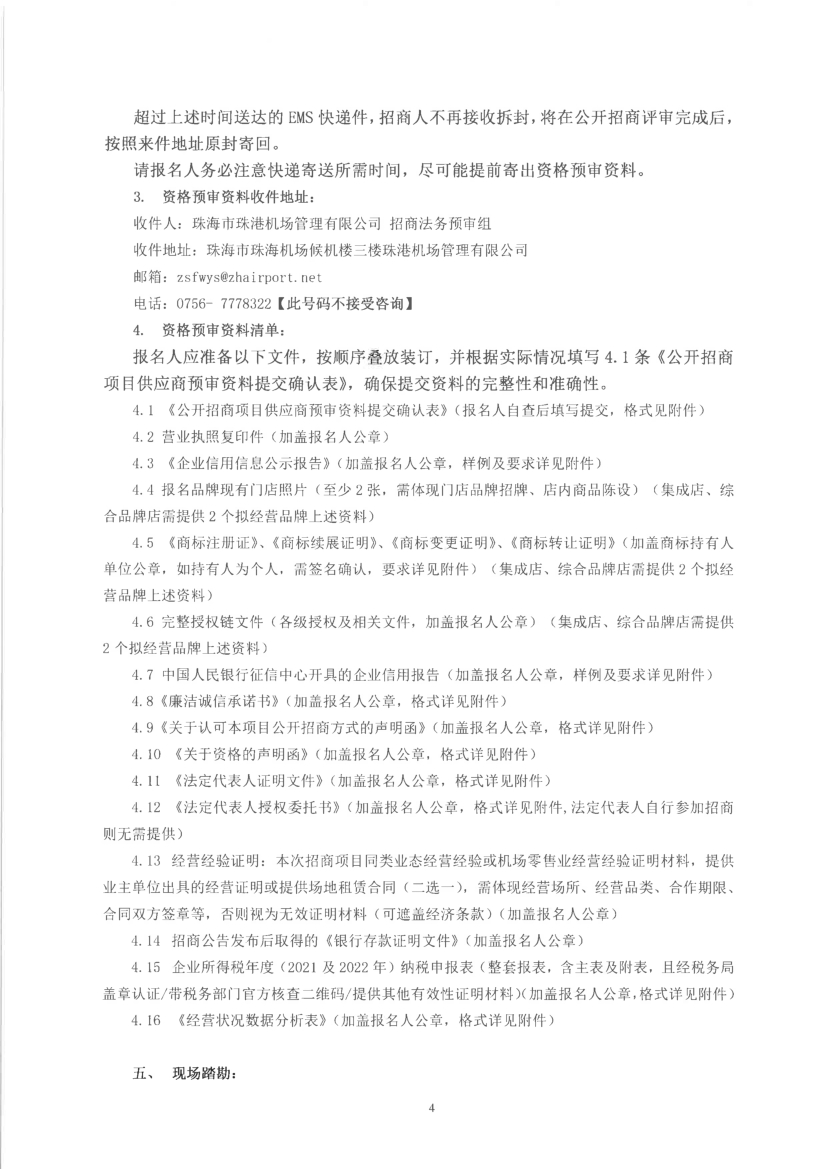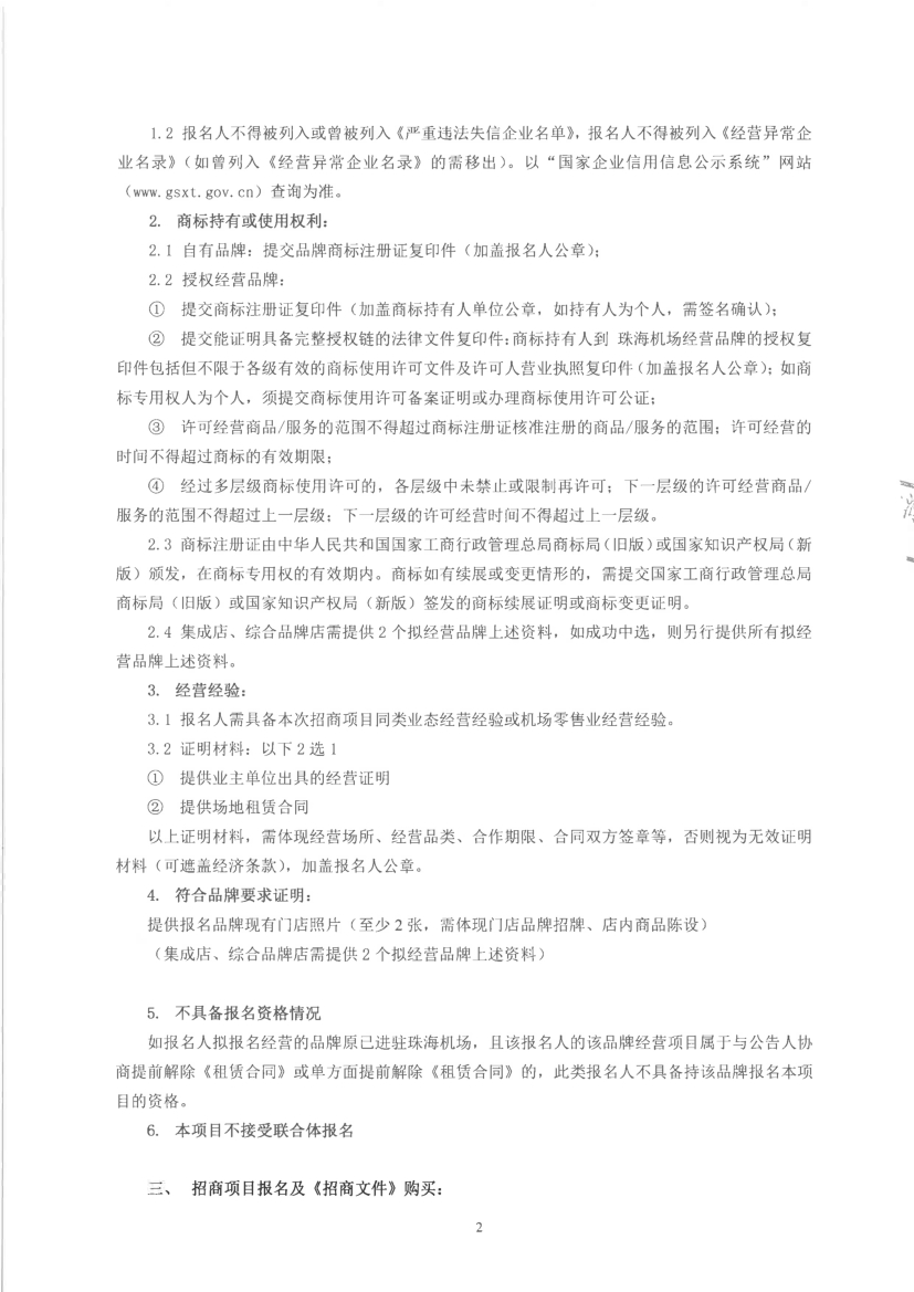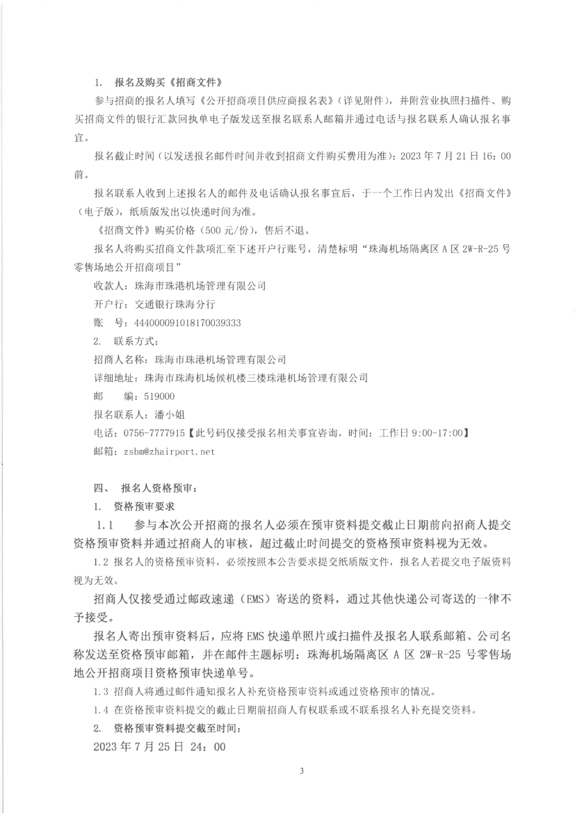 珠海機場隔離區A區2W-R-25號零售場地公開招商項目-報名附件