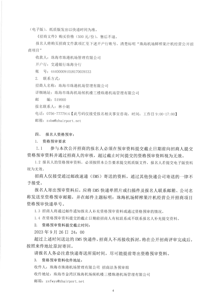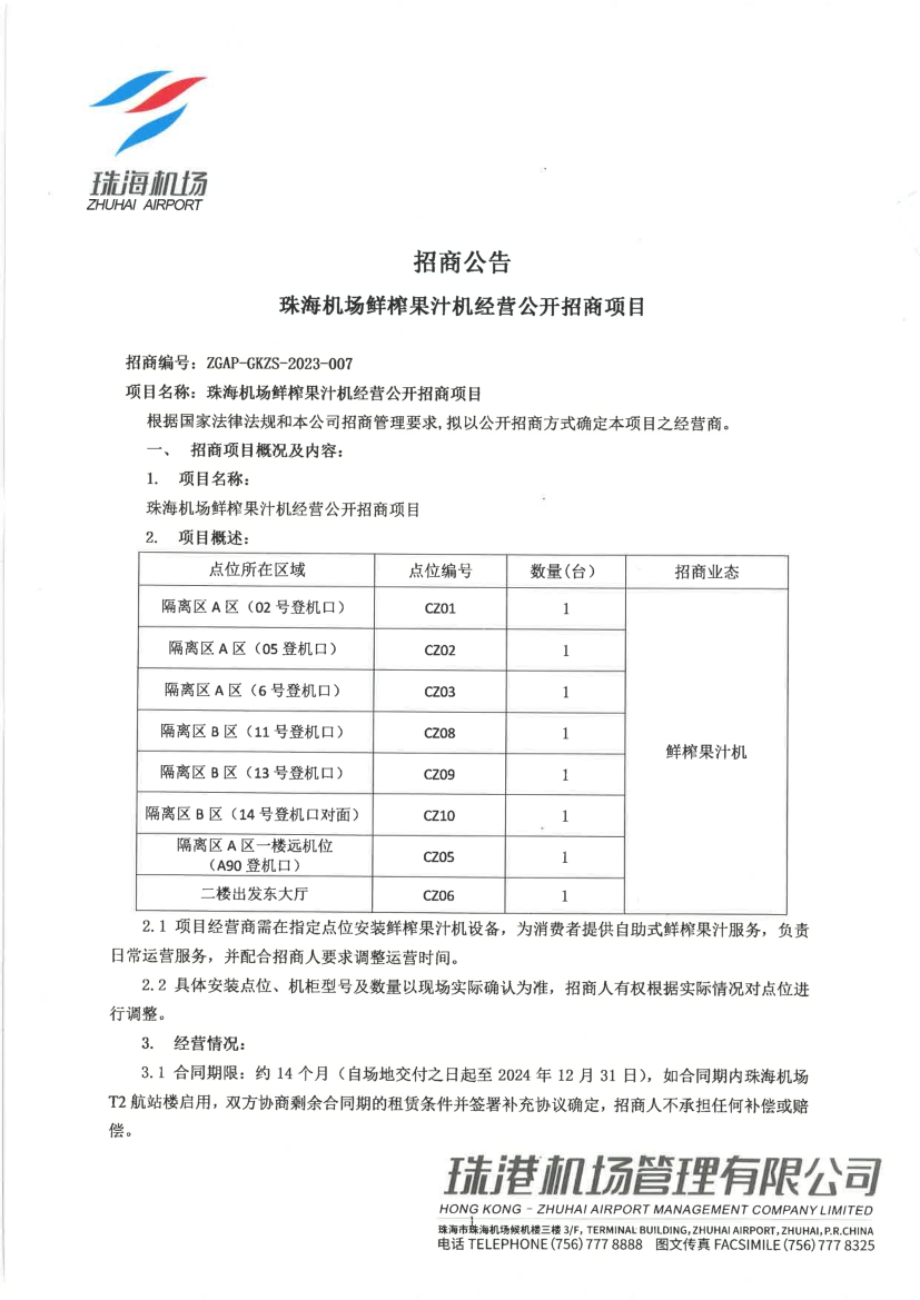 珠海機場鮮榨果汁機經(jīng)營公開招商項目-報名附件