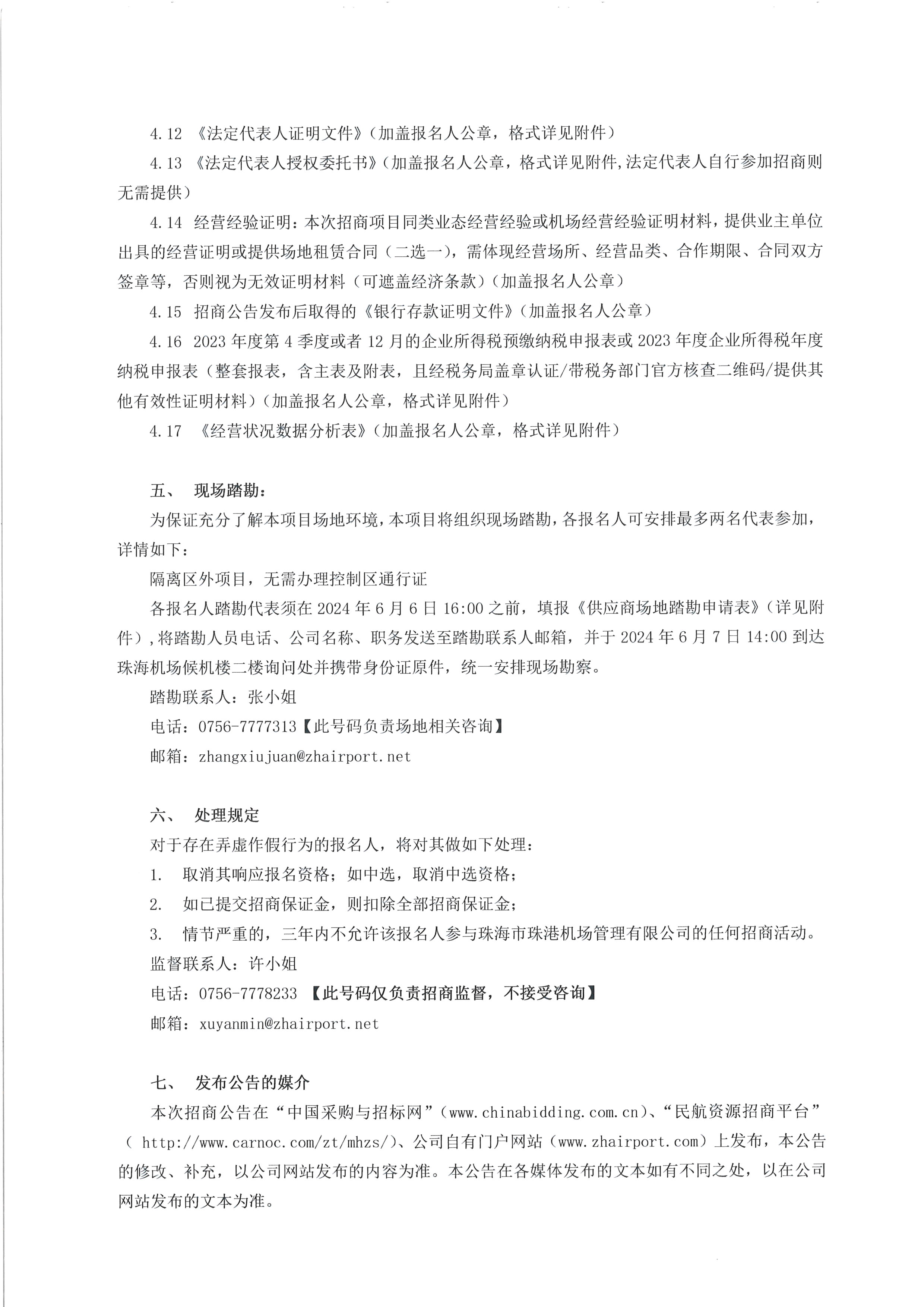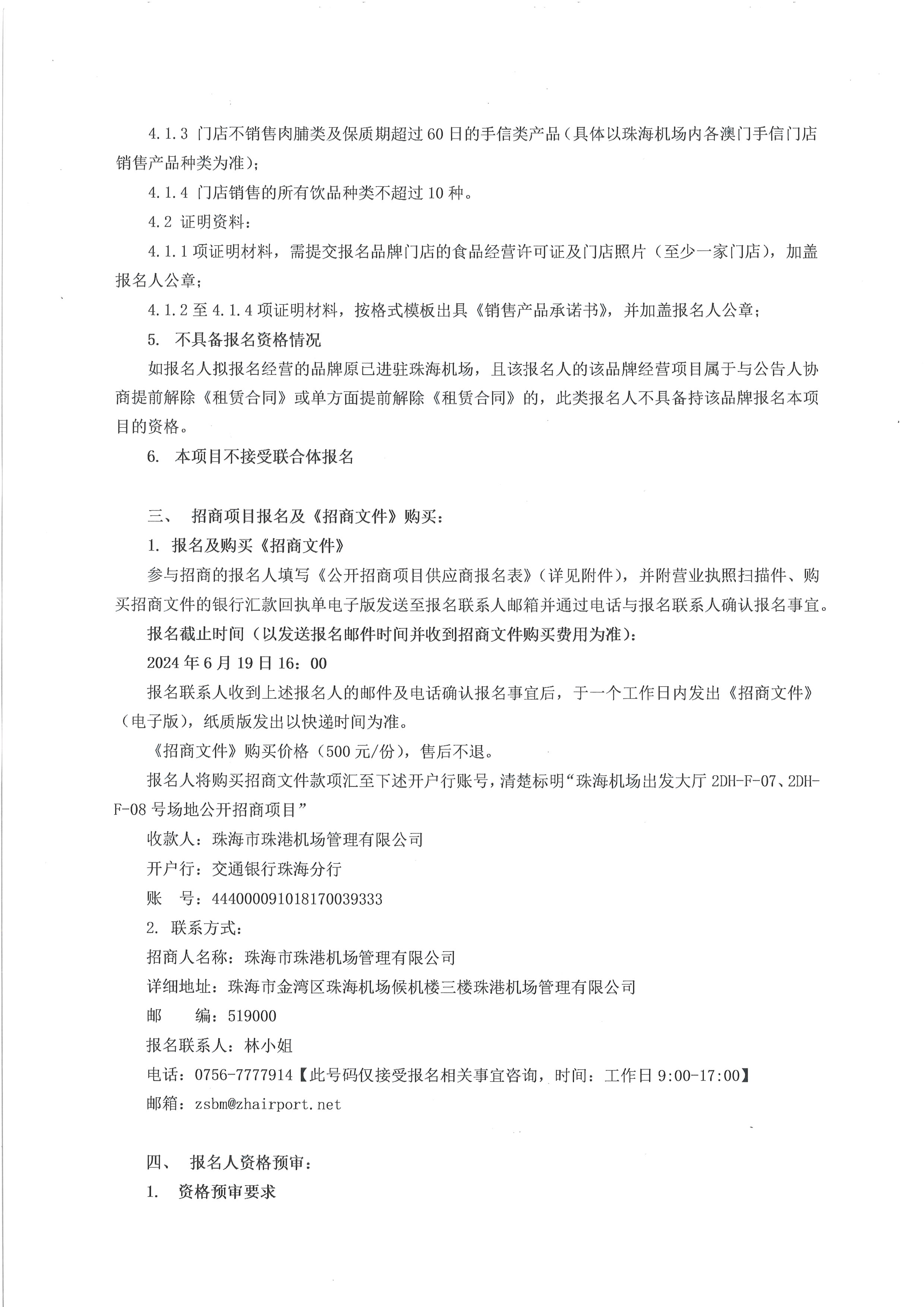 珠海機場出發大廳2DH-F-07、08號場地公開招商項目項目-報名附件