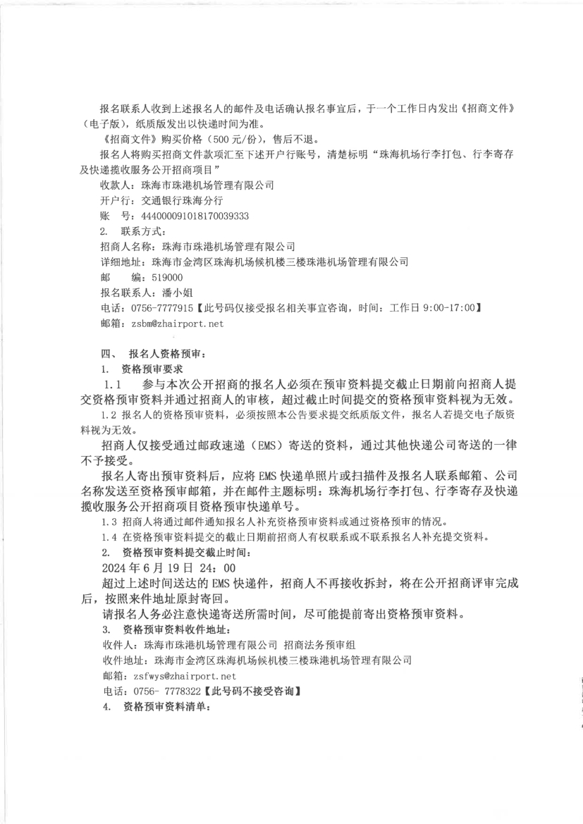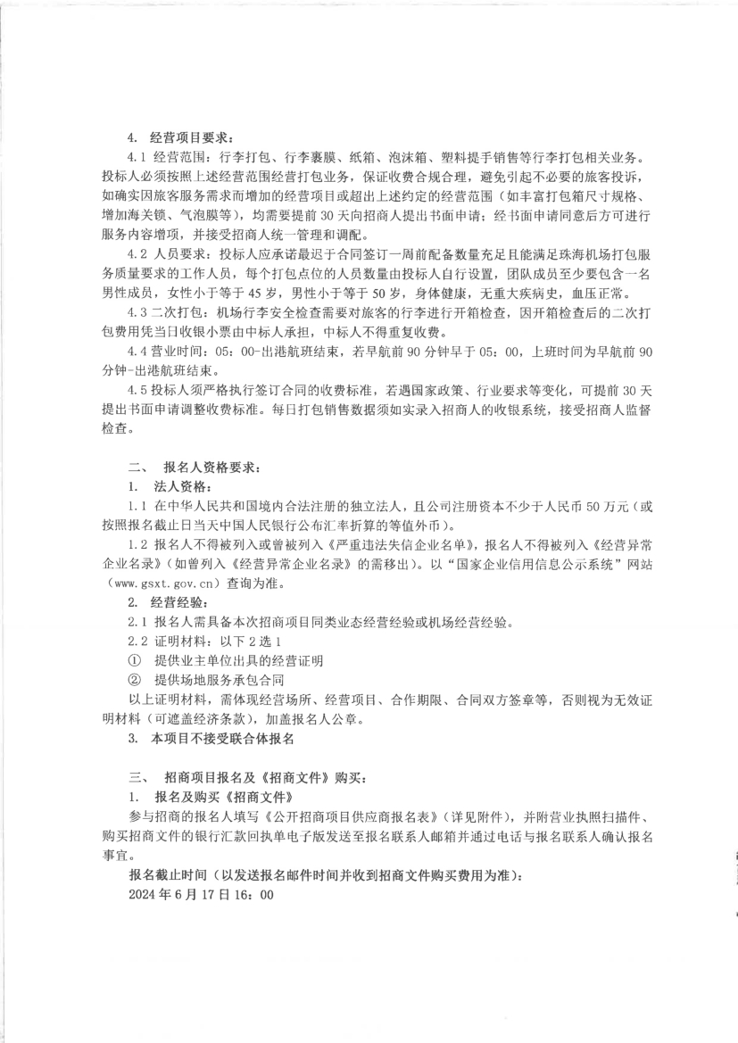 珠海機(jī)場行李打包、行李寄存及快遞攬收服務(wù)公開招商項目報名附件