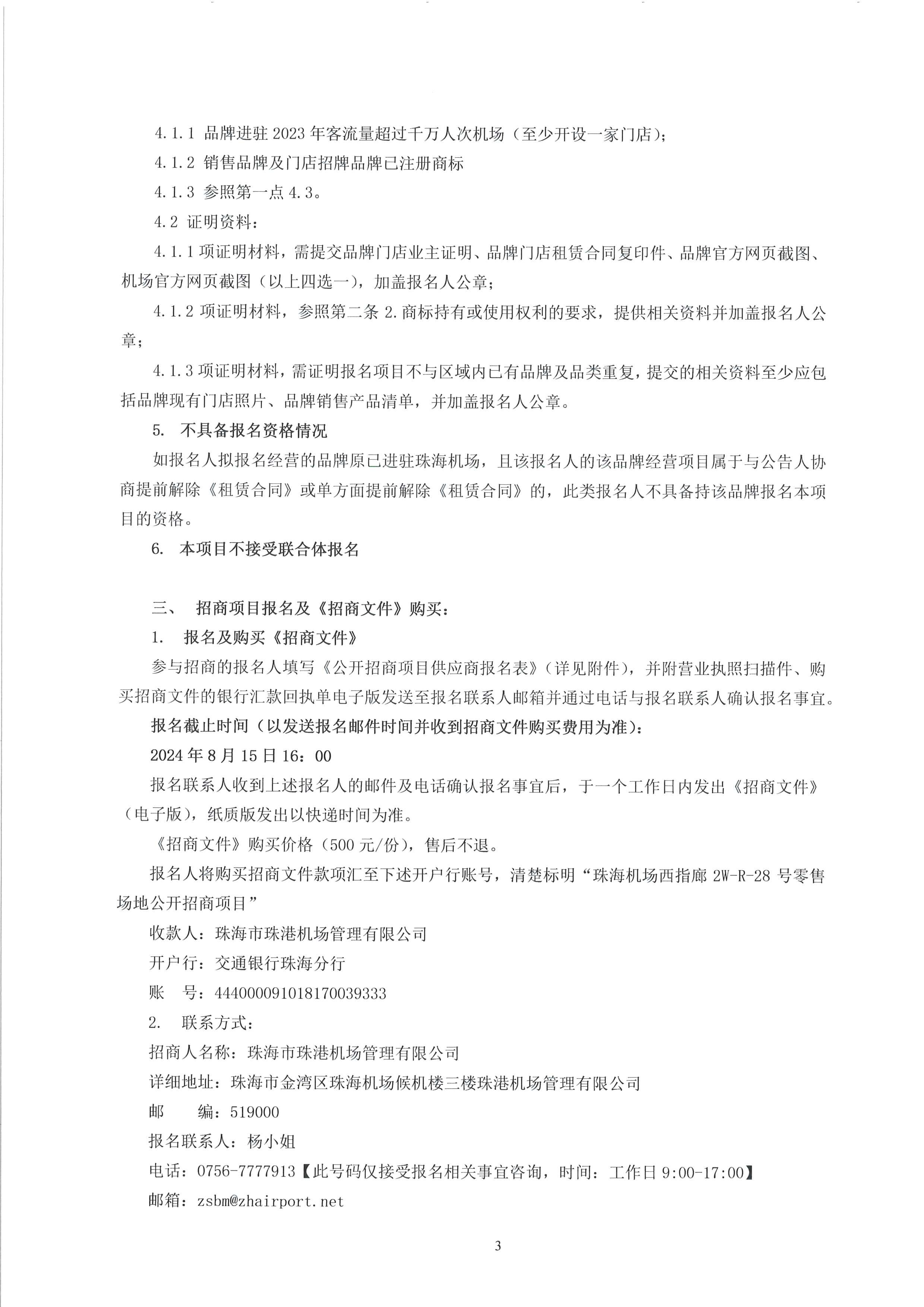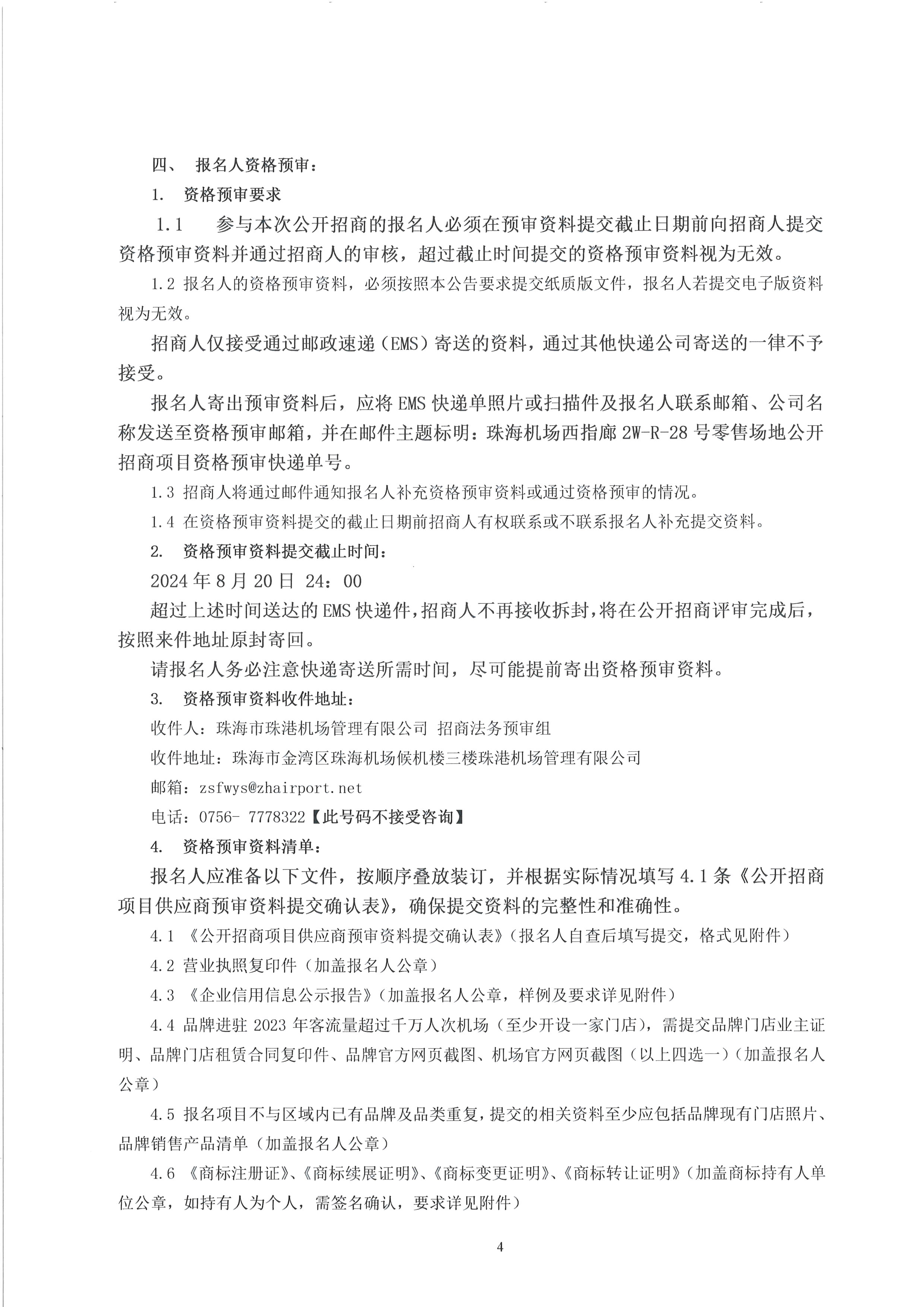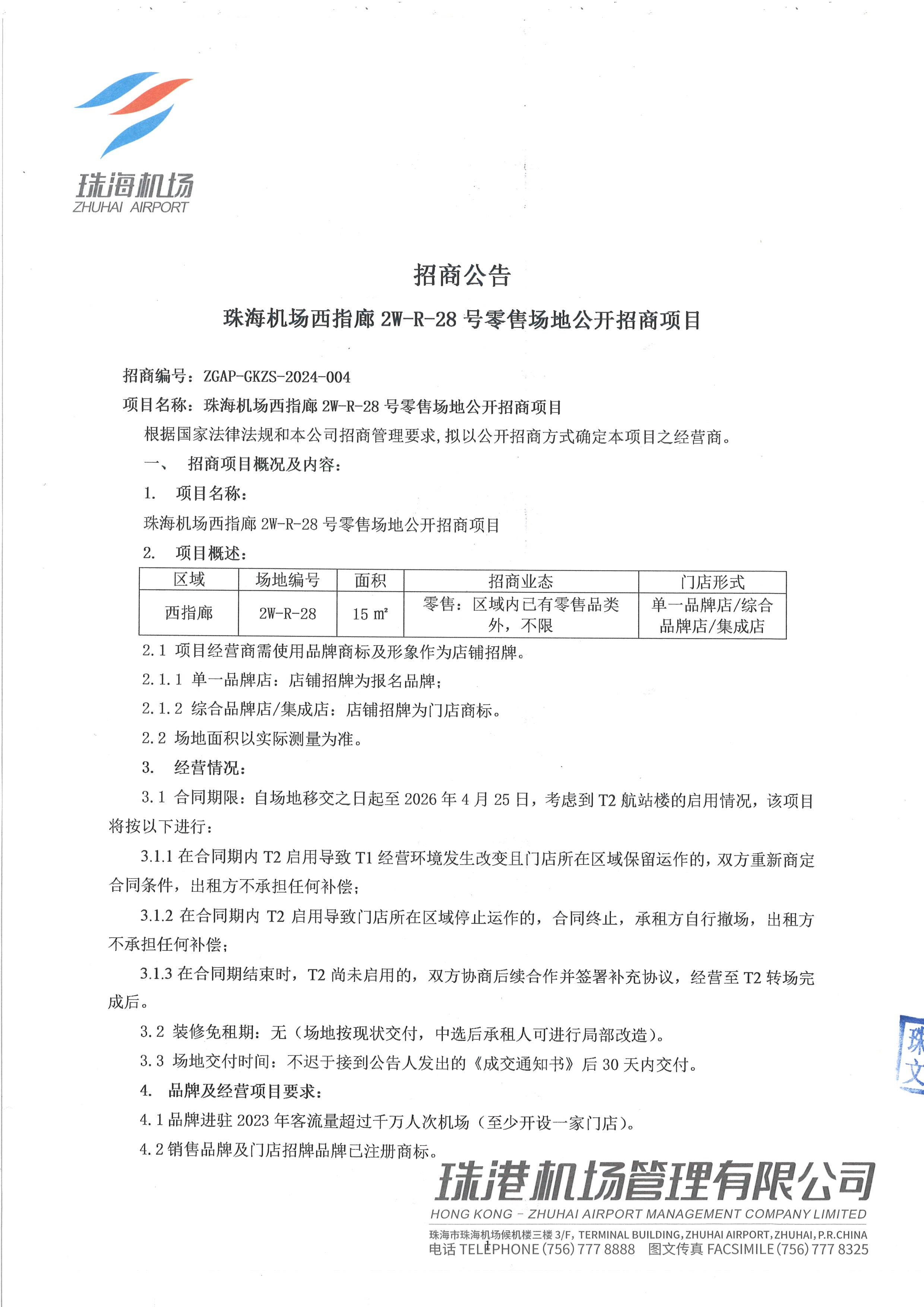 珠海機場西指廊2W-R-28號零售場地公開招商項目-報名附件