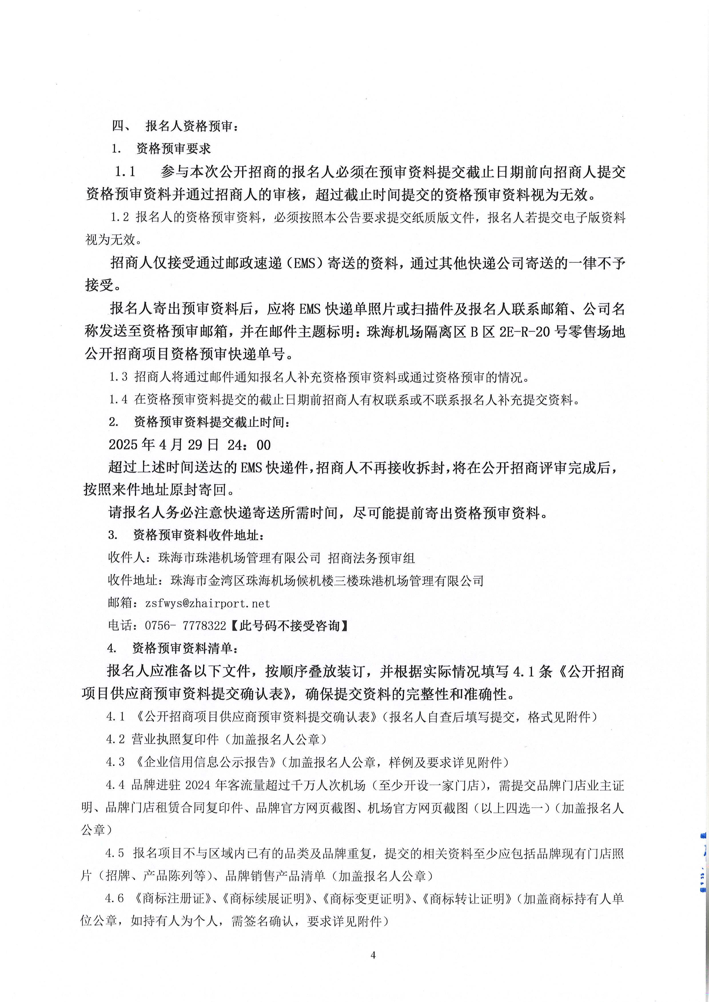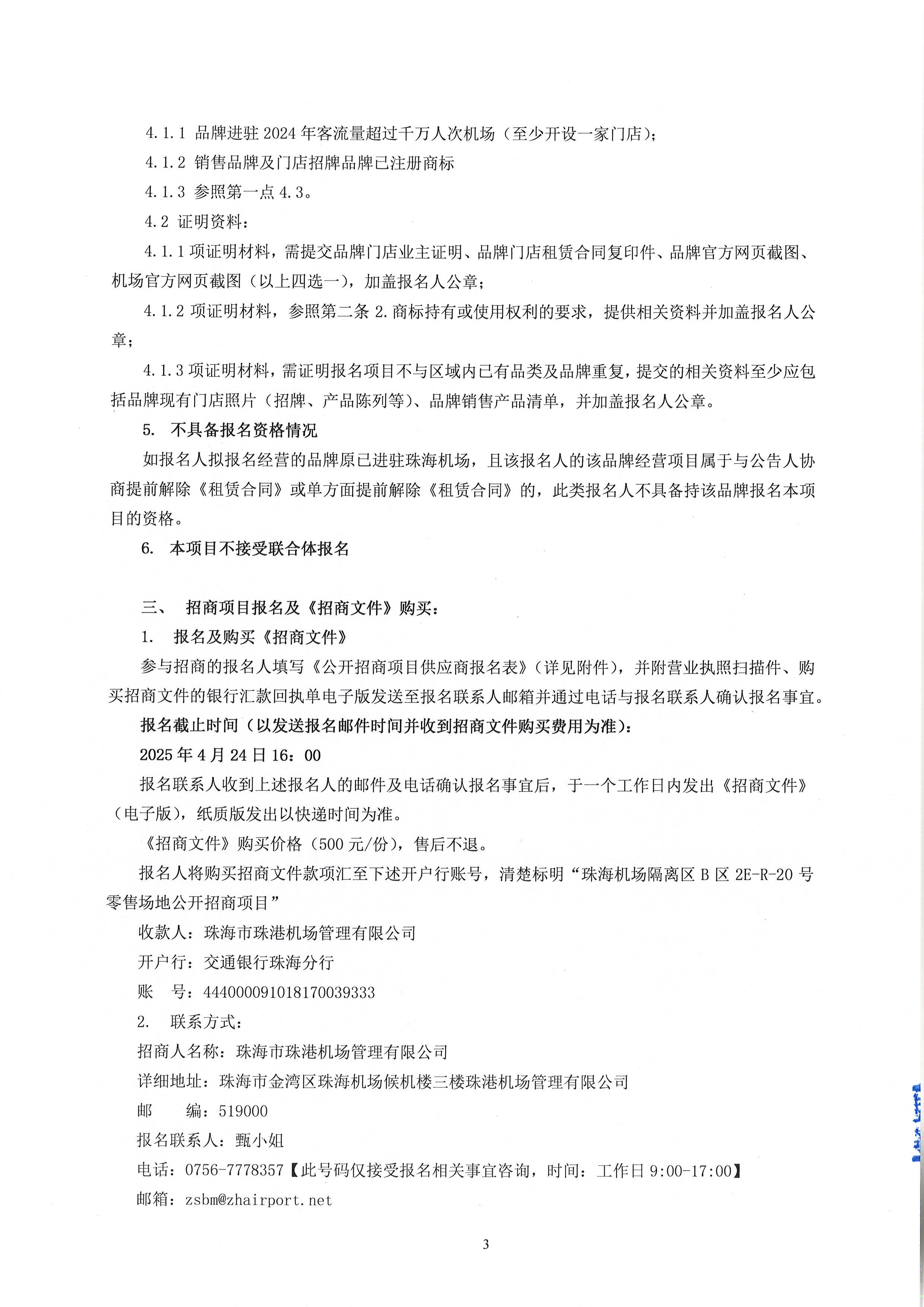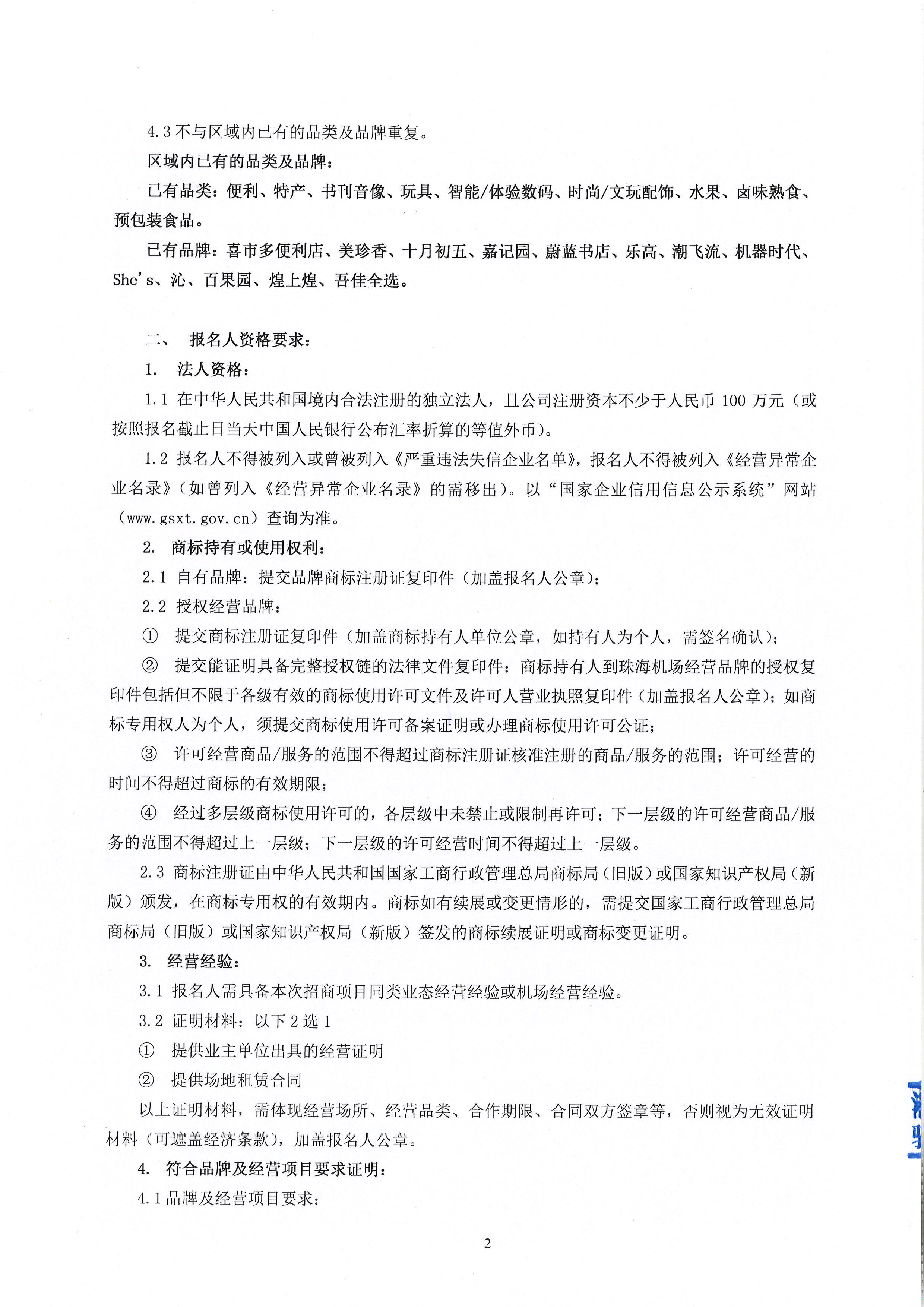 珠海機(jī)場隔離區(qū)B區(qū)2E-R-20號零售場地公開招商項目-報名附件