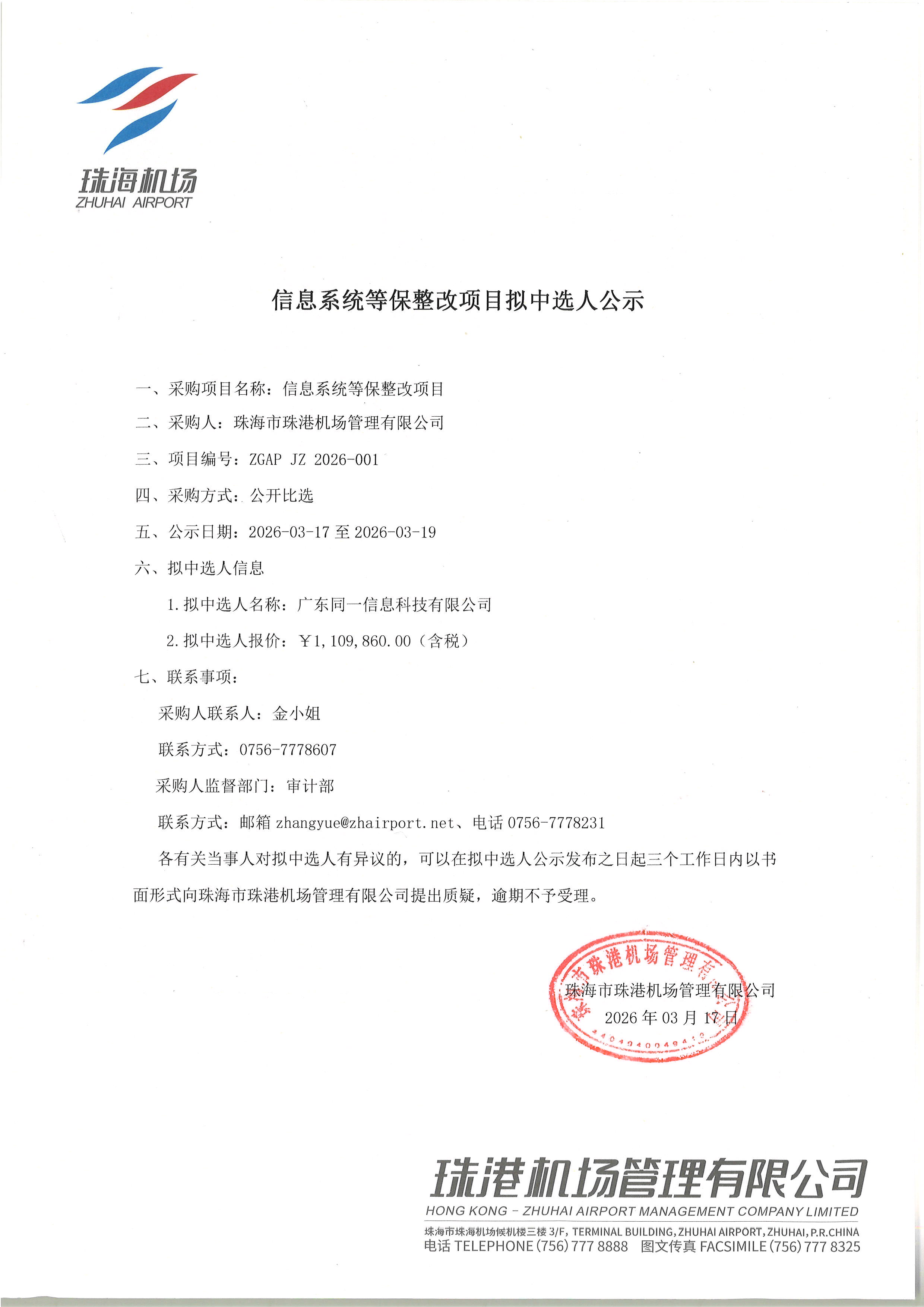信息系統等保整改項目擬中選人公示