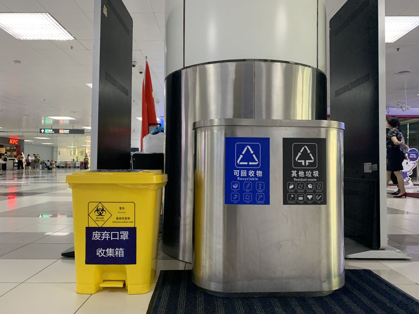 珠海機場結(jié)合候機樓內(nèi)辦公區(qū)域分布、旅客行動路線,于辦公區(qū)、停車場、餐飲商戶、候機區(qū)域相應設置分類的垃圾桶;在出發(fā)大廳入口、安檢口等區(qū)域設置有毒垃圾回收垃圾桶;并張貼統(tǒng)一垃圾分類圖文標識,進行候機樓內(nèi)垃圾桶規(guī)范設置的同時,也提醒旅客正確實施垃圾分類。