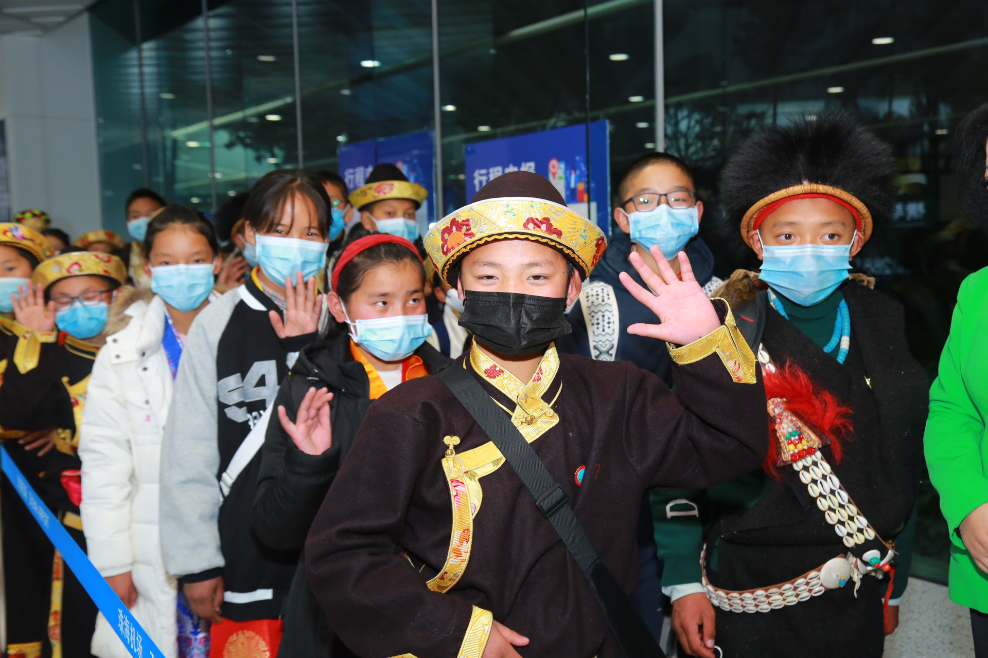 12月30日下午,珠海機場迎來了一群特別的客人——60名來自西藏自治區林芝市米林縣的師生乘坐CZ2782航班來到珠海,參加以“林海緣·青春夢”為主題的2021年西藏米林學子珠海冬令營。為給初到珠海的米林師生們留下一個溫暖美好的印象,珠海機場聯合珠海市婦女兒童福利會準備了一場富有愛心的歡迎儀式。珠海機場工作人員耐心地協助師生們完成一系列的行程申報防疫工作后,為他們送上精心準備的圍巾及定制的筆記本,珠海機場的吉祥物“飛飛”的出現,更使現場充滿了溫暖與快樂的氛圍,小朋友們紛紛圍擁上來與吉祥物合影留念。隨后,珠海市婦女兒童福利會的工作人員及志愿者們為師生們帶來了精彩的舞蹈表演。米林縣的師生們十分感動,在現場為大家獻上哈達以答謝珠海機場及珠海市婦女兒童福利會的的熱情服務,并與工作人員進行合照。