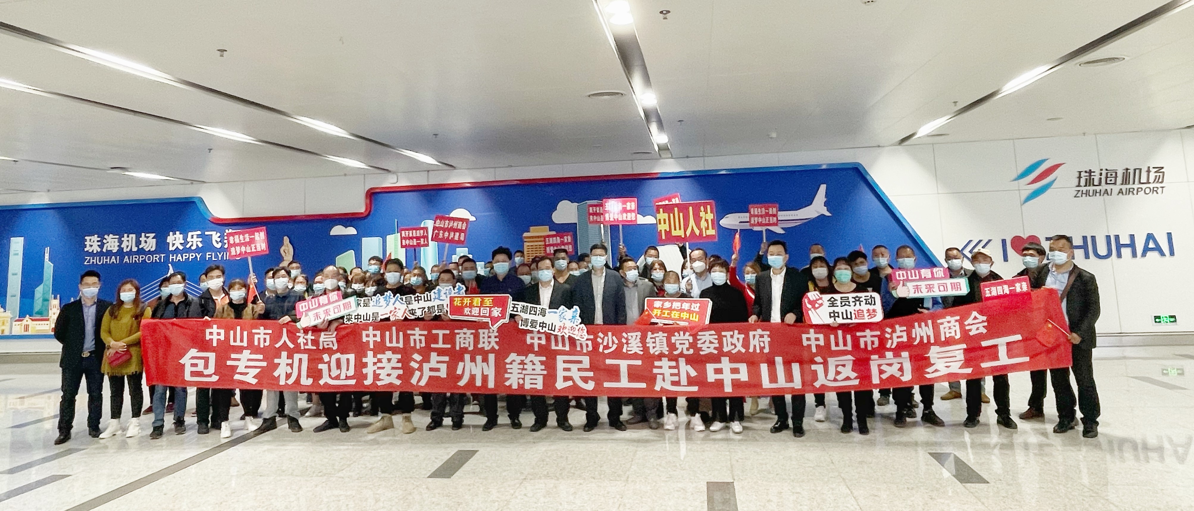 此次包機由中山市政府牽頭、中山市瀘州商會與南航珠海公司共同承辦,結合疫情防控要求,組織包機,以“點對點”的方式接回四川省瀘州市務工人員,打造復工復產“空中通道”,有序推動企業節后復工復產。