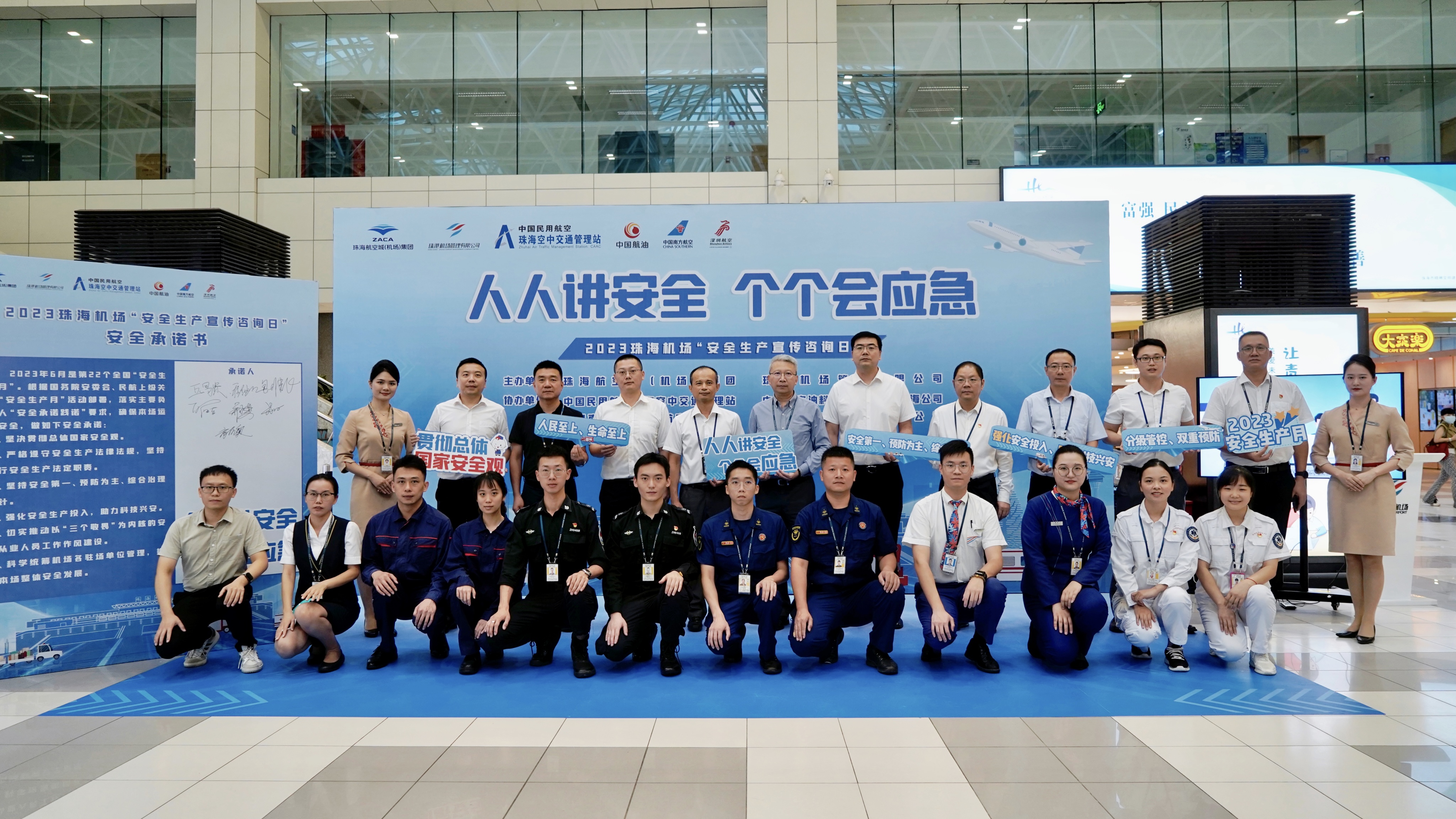 今年6月是全國第22個“安全生產月”。為深入宣傳習近平總書記關于安全生產的重要論述和對民航工作的指示批示精神,以及黨中央、國務院、民航局關于安全生產工作的決策部署,進一步夯實安全基礎,增強公眾安全意識,6月16日,珠海機場安全管理委員會多家成員單位,包括:珠海航空城(機場)集團、珠港機場管理有限公司、中國民用航空珠??罩薪煌ü芾碚?、中國航空油料有限責任公司珠海公司、中國南方航空珠海航空有限公司及深圳航空有限責任公司珠海基地,在珠海機場候機樓出發大廳組織開展以“人人講安全