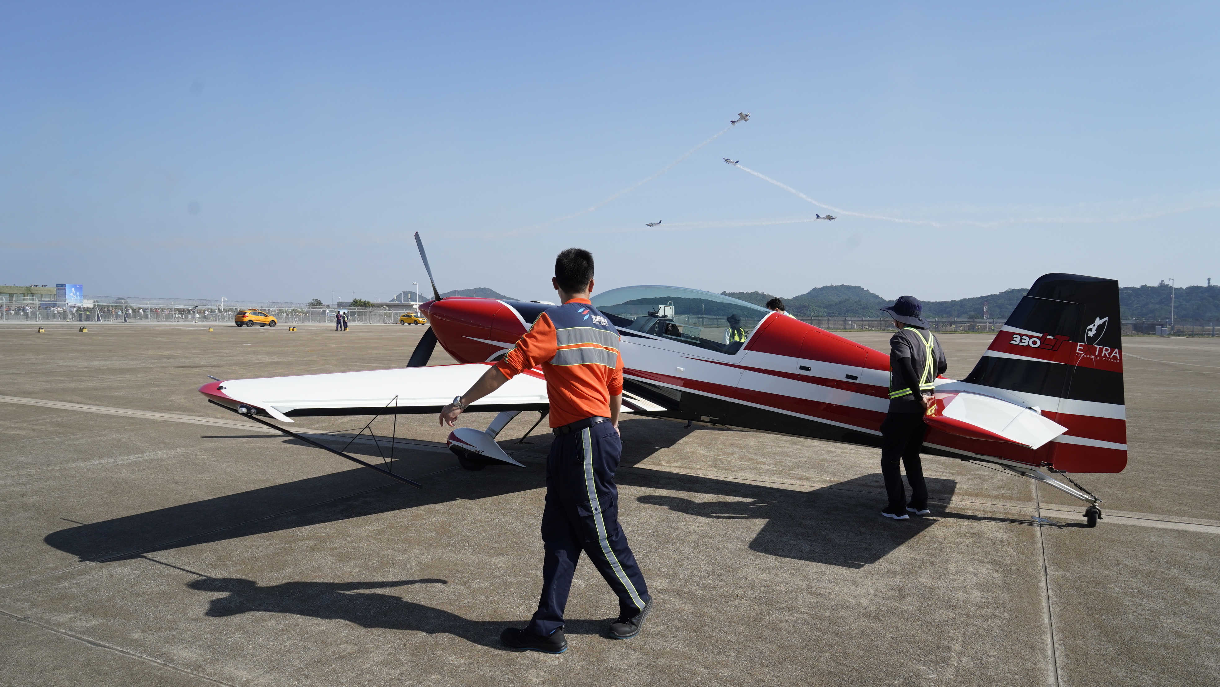 為確保運輸航空器和參展航空器共用機坪的運行安全,珠海機場專項調整了機坪運行規則,并為動態表演航空器進出機坪提供車輛引導服務。同時,為彌補機坪管制信號盲區,珠海機場派出管制員為表演航空器提供現場指揮,確保機坪管制服務萬無一失。此外,珠海機場加強機場周邊“低慢小”巡查和驅鳥工作,為第一屆亞洲通航展營造良好凈空環境。