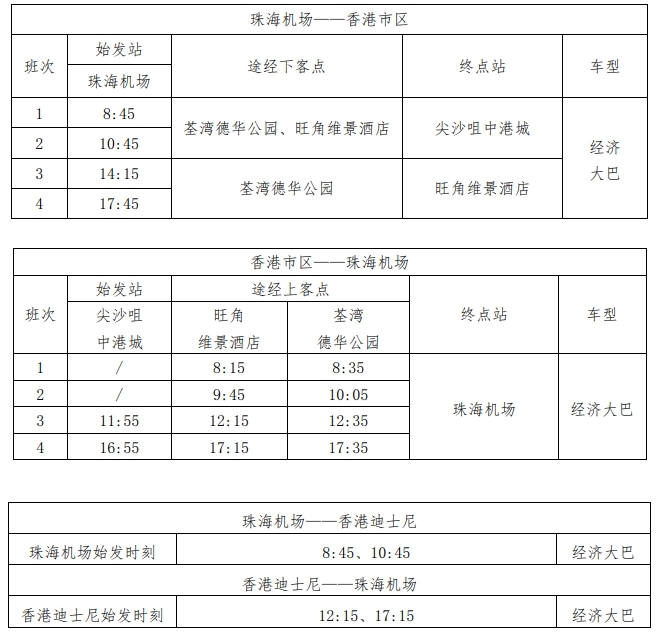 該線路由香港中旅汽車服務有限公司(下稱“中旅巴士”)運營,每天對開8個班次,乘客可通過“中旅巴士”及“珠海機場快線”小程序查詢班次信息及購票。