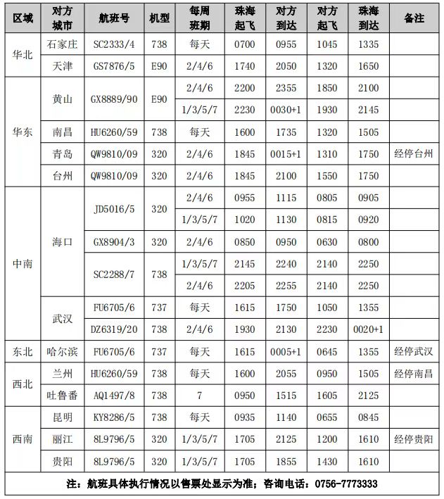 為滿足廣大旅客的暑運出行需求,珠海機場積極協調航空公司,優化航線網絡布局,加密熱門航線航班。暑運期間新增珠海直飛吐魯番航線,恢復了黃山、臺州航點,加密了昆明、蘭州、武漢、哈爾濱、海口、成都、貴陽、麗江、石家莊等旅游熱門航點,珠海至北京每日計劃班次將高達16班、上海每日13-14班,成都、西安、鄭州、杭州、重慶、武漢、??诿刻?班以上,為旅客暑期出行提供更多選擇。