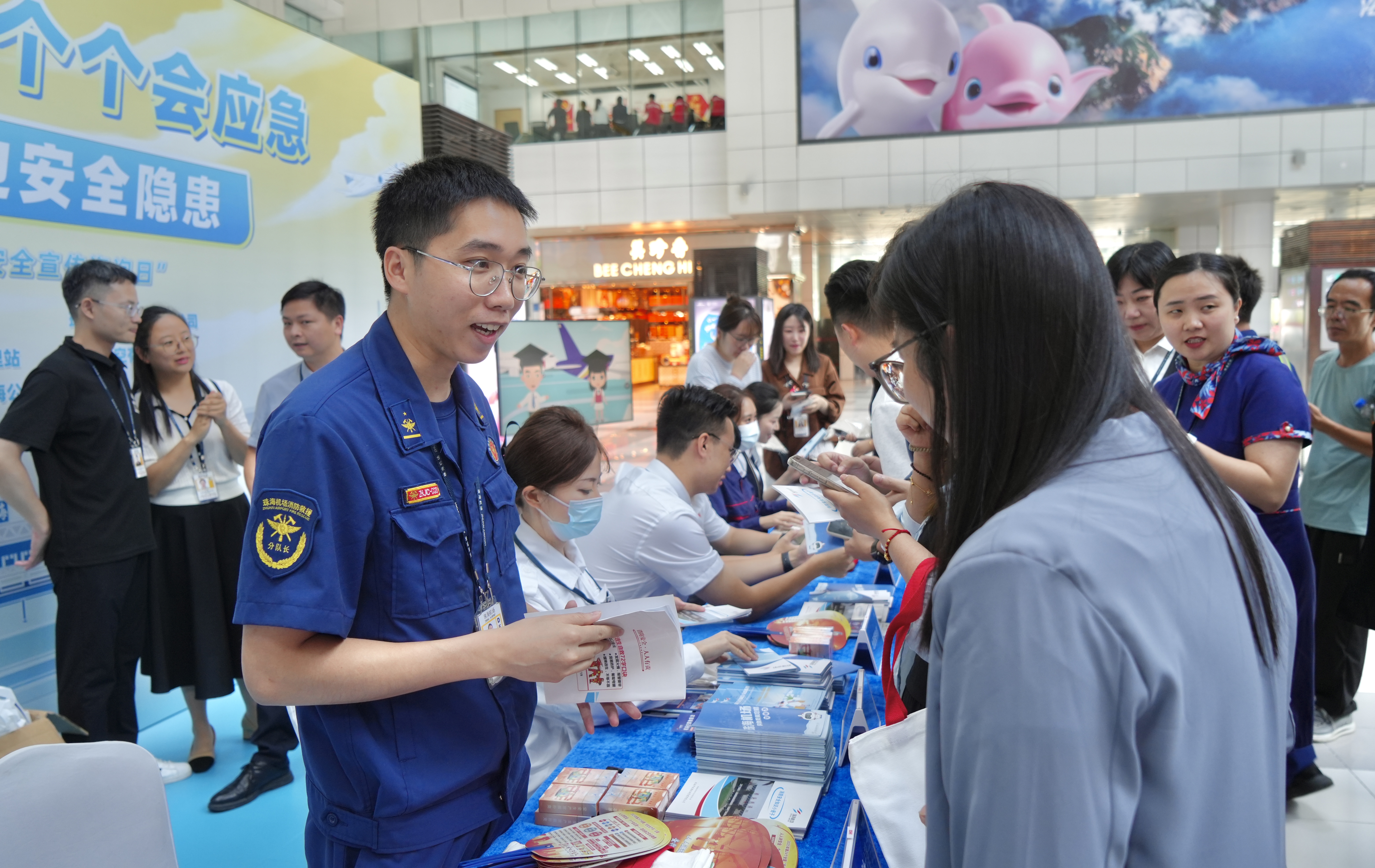活動當日,珠海機場集團有限公司、珠港機場管理有限公司聯合中國民用航空珠??罩薪煌ü芾碚?、珠海航空有限公司、中國航空油料有限責任公司珠海公司,于珠海機場候機樓出發大廳共同簽署 “安全倡議書”,向全體工作人員發出筑牢思想根基、壓實安全責任等倡議。現場以展示展板、播放視頻、咨詢問答、游戲互動等多元形式,全面普及民航消防及醫療應急、旅客乘機服務、機場凈空保護等7個方面的安全知識,充分調動群眾參與熱情,系統宣傳民航安全生產方針政策與法律法規,針對性解答公眾關注的民航安全運行問題。