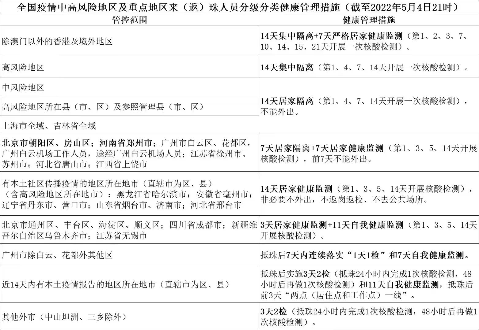 附:全國疫情中高風險地區及重點地區來(返)珠人員分級分類健康管理措施