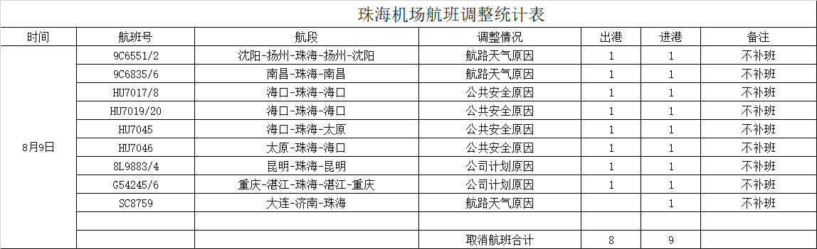 【航班取消信息】受航路天氣影響及公共安全原因,截止18:50,珠海機場取消進出港航班共17班;(詳見下圖)請出行旅客及時留意航班信息,及時與所購票航空公司聯(lián)系,合理安排出行。