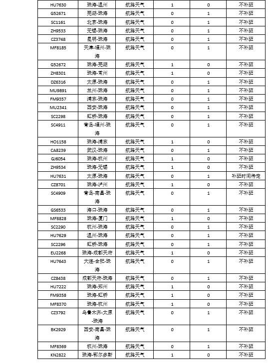 【航班取消】珠海機場4月21日航班取消信息