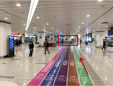 到達大廳(03)出口出來前行60米
