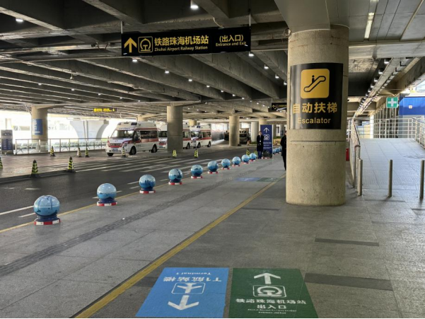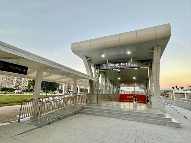 需要乘坐城際鐵路的旅客,可根據指引標識,從珠海機場T1航站樓,經人行步道步行約500米,通過1B出入口進入珠機城際“珠海機場站”。